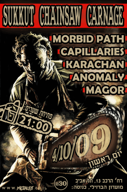 СообщениеДобавлено: Вс Сен 13, 2009 9:03 pm    Заголовок сообщения: 04.10.09 Sukkut chainsaw carnage в Барзилай Тель Авив Ответить с цитатой